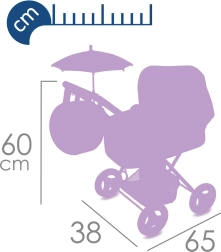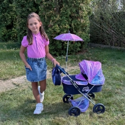 Des accessoires pratiques stimulent l’imagination pendant le jeu : le parasol protège la poupée, le matelas assure le confort et le panier inférieur accueille tous les indispensables. La finition soignée et l’association de métal, plastique et textile garantissent résistance et longue durée de vie.