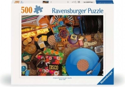 Le puzzle présente un collage vivant avec des motifs de l'époque disco, offrant une expérience visuelle unique.