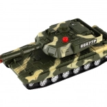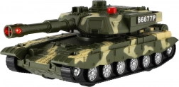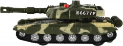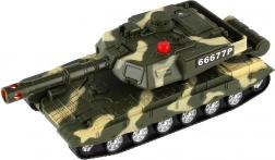 Partez à l’action avec ce char en plastique robuste à inertie, qui s’élance vivement vers l’avant après une poussée. La tourelle pivotante avec long canon et les détails réalistes du châssis s’allient à des effets lumineux et sonores spectaculaires qui renforcent chaque scénario de jeu.