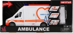Ambulance Jouet en Plastique 28cm avec Brancard et Roue Libre avec Lumière et Son