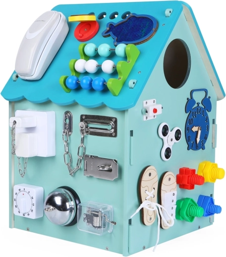 La maison d’activités interactive 2Kids Toys offre aux enfants dès 3 ans des heures de découverte et d’apprentissage. Elle propose des serrures, boucles, lacets, un téléphone, une sonnette, un abaque et une horloge pour développer la motricité fine, la coordination œil-main, la créativité et la stimulation sensorielle. Livrée montée dans une boîte.