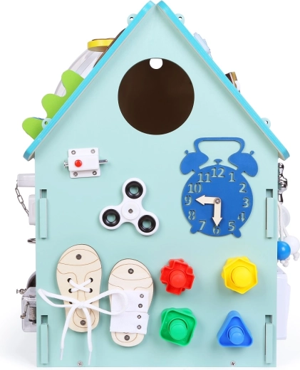 Des éléments éducatifs comme l’abaque et l’horloge à aiguilles aident à développer la pensée logique, la patience et la concentration. La maison est idéale pour la maison comme pour les structures préscolaires.