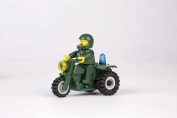 Le jeu de construction contient en tout 123 pièces, qui permettent de construire des éléments individuels comme un canon, une moto ou une voiture tout-terrain. Les enfants peuvent facilement changer les scénarios de jeu et impliquer leur imagination pour créer de nouvelles situations.