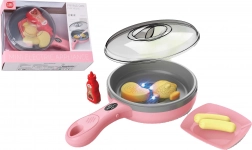 Jouet amusant pour la cuisine des enfants – poêle électronique rose d’un diamètre d’environ 27 cm, qui pendant la « friture » change la couleur des aliments et offre des effets lumineux et sonores. Inclus : poêle avec couvercle, assiette, ketchup et 4 pièces d’aliments. Fonctionne avec 2× piles AAA (non incluses).