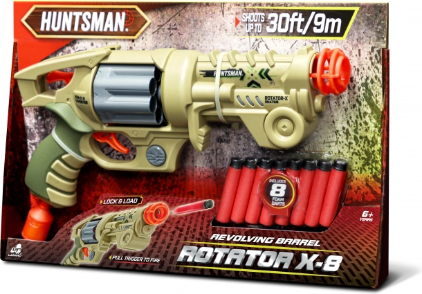 Découvrez le revolver fiable X8 Huntsman avec une capacité de tambour pour 8 balles, idéal pour les petits chasseurs et leurs aventures. Avec une longueur de 32 cm, il est parfait pour les enfants à partir de 6 ans.