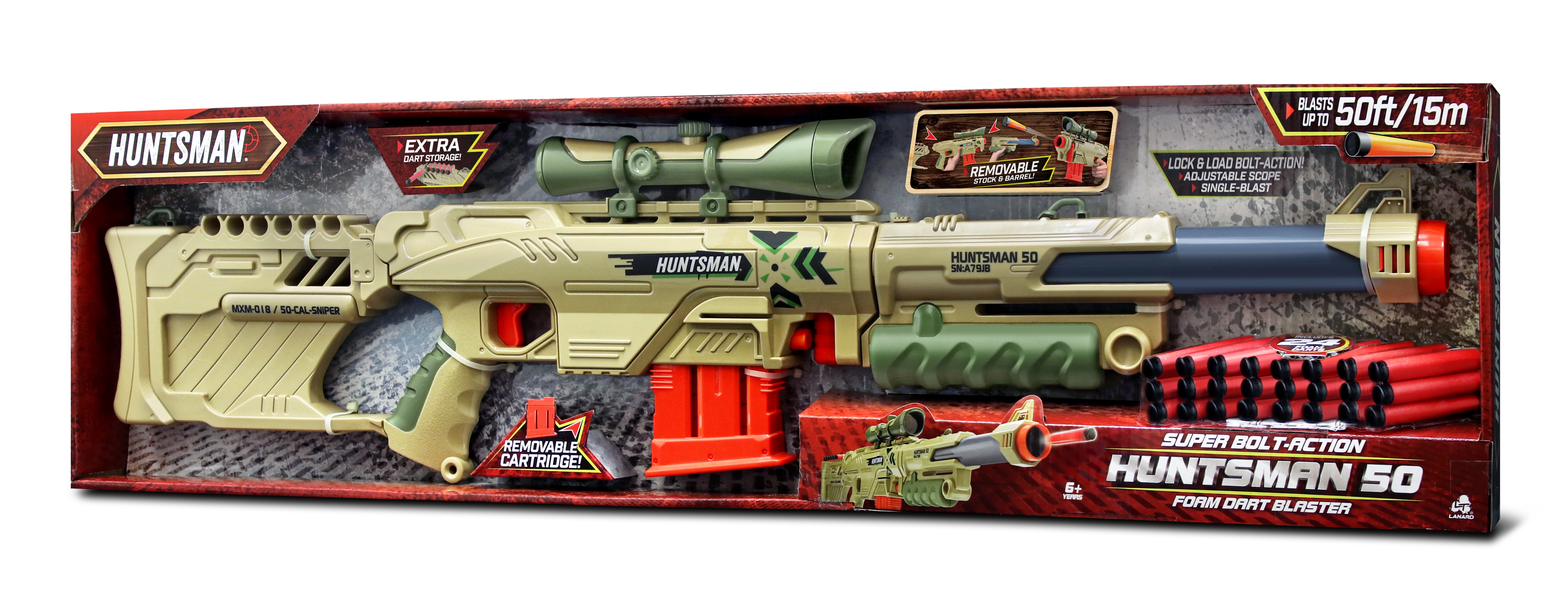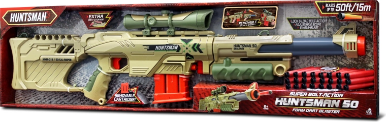 Profite d'un divertissement plein d'action avec la plus grande arme de la collection Huntsman – le Sniper Blaster 92 cm. Retire facilement le prolongateur de canon, la crosse et le viseur pour transformer le long fusil de sniper en un blaster manuel pratique. L'emballage comprend 12 projectiles en mousse et l'arme convient aux enfants à partir de 6 ans.