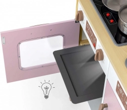 La plaque de cuisson avec son de cuisson et rétroéclairage, le four éclairé et les commandes à cliquetis offrent aux enfants une véritable expérience culinaire.