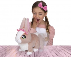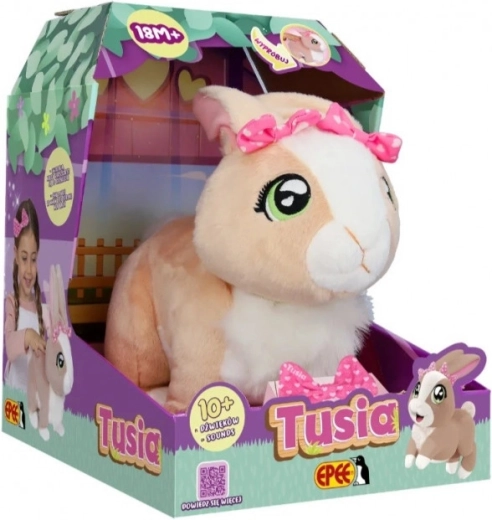 Le lapin Tusia séduit immédiatement avec son pelage beige moelleux, ses grands yeux verts et ses détails délicats, dont le petit nœud rose. Grâce à ses fonctions interactives, il apporte aux enfants beaucoup d’amusement et de réconfort lors des câlins. Lorsqu’on le caresse, il se met à sautiller joyeusement, bouge ses oreilles et émet de charmants sons qui stimulent l’imagination et le développement émotionnel de l’enfant.