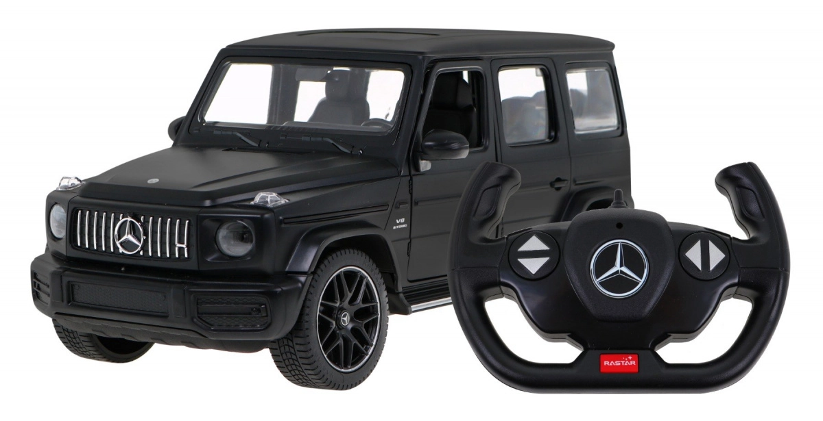 Modèle stylé Mercedes‑AMG G 63 à l’échelle 1:14 de la marque RASTAR, offrant une reproduction fidèle des détails, conduite dans toutes les directions, phares LED et suspension indépendante. Portes ouvrantes, pneus en caoutchouc et commande 2,4 GHz pour une conduite ludique et fluide sans interférences.