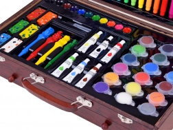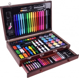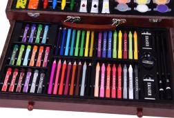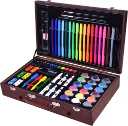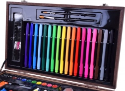 La mallette en bois de dimensions 37 cm x 23 cm x 7,5 cm assure un transport et un rangement faciles de toutes les fournitures artistiques.