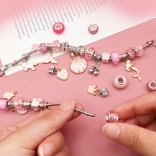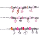 L'ensemble contient tout ce dont vous avez besoin pour créer de beaux bracelets et colliers : différentes perles, pendentifs et cordons.