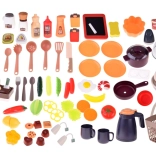 • Ensemble de 88 accessoires incluant casseroles, poêle, ustensiles, vaisselle, aliments et boissons
