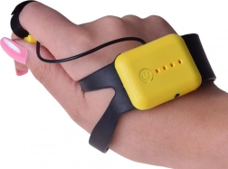 Le bracelet de commande noir et jaune permet de manœuvrer facilement le drone par gestes.