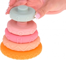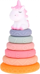 Pyramide en caoutchouc et sensorielle est un excellent jouet pour les tout-petits. Elle se compose d'une figurine de licorne et de six anneaux successifs, qui stimulent le développement de la motricité fine et la reconnaissance des couleurs.