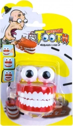 Sans piles : quelques tours de clé suffisent et le dentier se met à bouger et à claquer tout seul.
