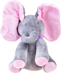 Cet éléphant en peluche est un jouet idéal pour les enfants qui aiment la musique et l’amusement interactif. En appuyant sur la patte droite, « Do Your Ears Hang Low » retentit et l’éléphant chante et bouge ses oreilles. La patte gauche lance « Peek‑A‑Boo, where are you?! » et le petit éléphant invite à jouer à cache‑cache.