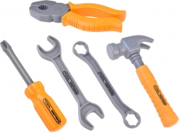 Le set comprend un marteau, des clés, un tournevis, des vis, des écrous et des pièces de construction – idéal pour exercer la motricité fine et construire de façon créative.