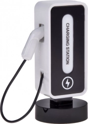 La station se connecte via USB et permet de recharger la voiture directement avec le câble depuis la station. Un simple interrupteur permet de choisir si l’on recharge la station ou le véhicule.