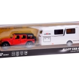 Voiture tout-terrain avec caravane avec lumières et sons 1:32 – rouge