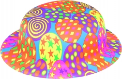 Ce chapeau joyeux aux motifs colorés est un excellent choix pour toute animation. Il est fabriqué en plastique souple, s’ajuste bien et se nettoie facilement. Grâce à ses couleurs et motifs vifs, il attire le regard et apporte une touche ludique à votre événement.