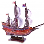 Découvrez la magie des explorations maritimes avec le modèle détaillé du célèbre navire GOLDEN HIND, la galéone amirale de Francis Drake. Les pièces du puzzle 3D sont découpées dans un carton de qualité, s’emboîtent avec précision et ne nécessitent ni colle ni outils. Le résultat est un modèle stable et esthétique, prêt à être exposé.