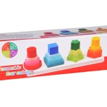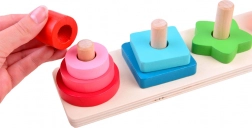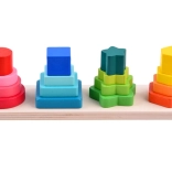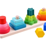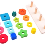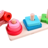 Quatre tiges avec des formes variées guident les enfants vers la reconnaissance et le tri des couleurs et des formes, développant ainsi la perception visuelle et la logique.