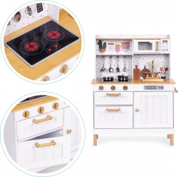 La cuisine en bois pour enfants de ECOTOYS est le choix idéal pour les petits chefs. Elle apporte joie et amusement en imitant les véritables activités culinaires et développe la dextérité manuelle et l'imagination. La cuisine est fabriquée avec des matériaux de qualité et comprend 7 accessoires de cuisine en métal.