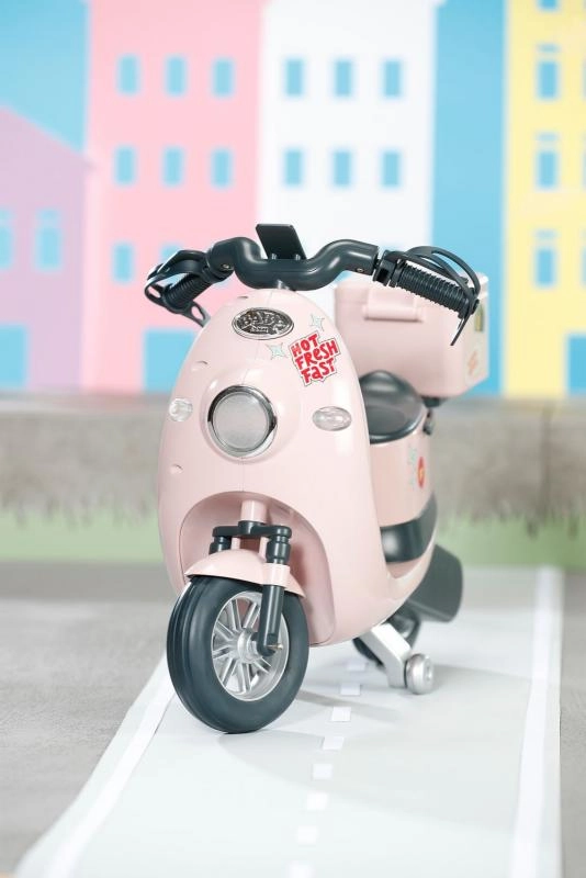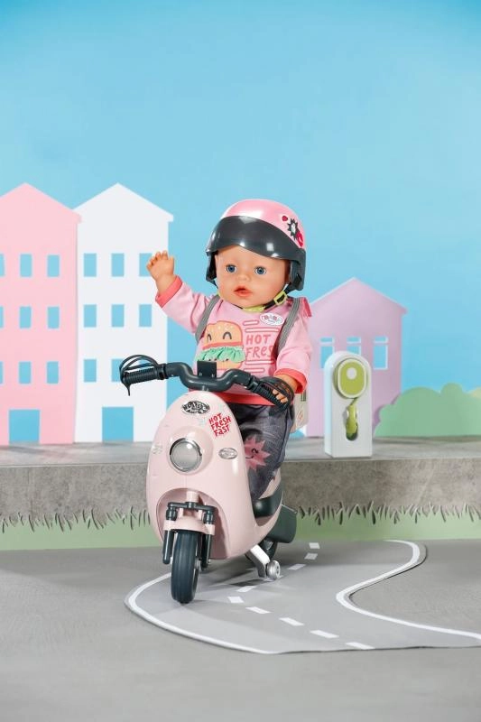 Le scooter électrique stylé pour poupée BABY born transforme chaque balade en un super moment de jeu. Grâce à la télécommande, il roule en avant et en arrière, avec des détails réalistes, un coffre de rangement et un effet lumineux lors du raccordement à la station de charge pour un jeu encore plus authentique.