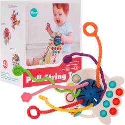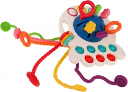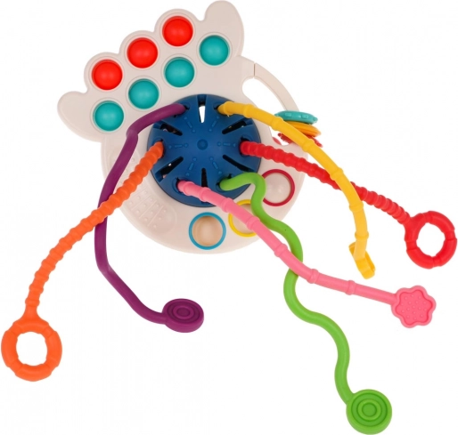 Découvrez la pieuvre sensorielle 4‑en‑1 pour les enfants dès 18 mois. Elle combine des cordons en caoutchouc à tirer et mordiller, les populaires bulles POP IT, des éléments coulissants et un jeu d’enfilage avec perles. Fabriquée avec des matériaux sûrs sans arêtes vives, elle offre des couleurs vives et peut se fixer au lit bébé, à la poussette ou au siège auto.