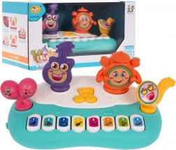 Chaque touche joue un instrument différent, ce qui aide à distinguer les sons et à faire les premières expériences musicales.