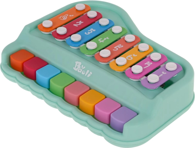 Jouet musical 2‑en‑1 amusant pour les tout‑petits : piano et xylophone en un seul. Convient dès 18 mois, fabriqué en plastique et métal de qualité, avec des couleurs vives et deux mailloches pour des découvertes musicales sans fin.