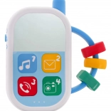 Téléphone interactif pour les enfants à partir de 6 mois. Fabriqué à partir des matériaux les plus qualitatifs dans des couleurs vives, sûr pour les tout-petits sans bords tranchants. Le téléphone est alimenté par 3 piles AAA 1,5 V (non incluses).