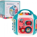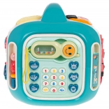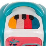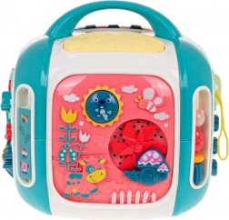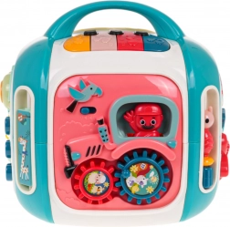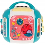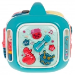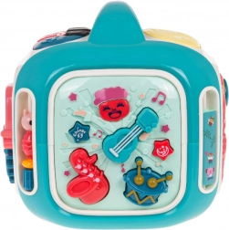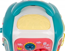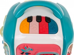 Le cube interactif est conçu pour s’amuser tout en apprenant. Les enfants découvrent les couleurs, les formes, les noms des animaux et des moyens de transport, entraînent leurs doigts sur les éléments rotatifs et explorent différentes mélodies et sons. Le panneau supérieur avec piano propose 3 modes et des touches sensibles pour jouer facilement.