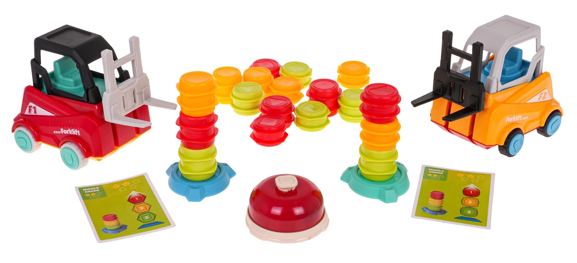 Le chariot élévateur est un jeu d’adresse amusant et stimulant pour les enfants à partir de 3 ans. Le set comprend deux chariots élévateurs, des tonneaux à empiler, des socles, des cartes et une sonnette. L’objectif est de construire rapidement et avec précision une tour de tonneaux selon la carte tirée au sort. Le jeu est chronométré et le gagnant est le joueur qui déplace en premier tous les tonneaux du chariot vers le socle avec succès.