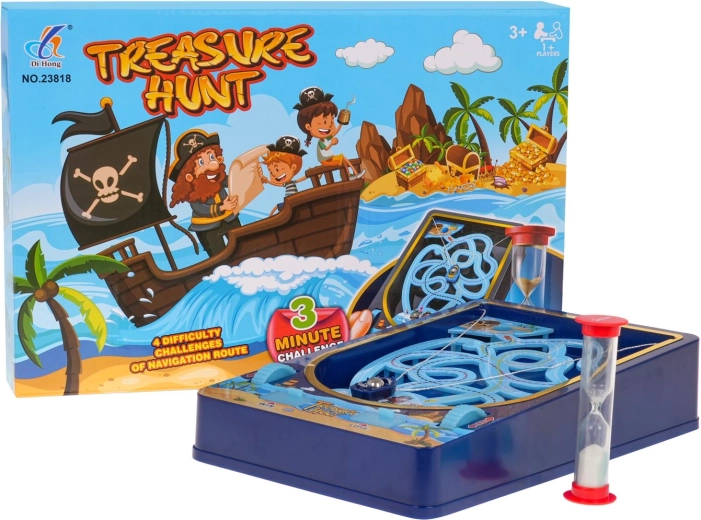 Jeu de plateau pour enfants Chasse au Trésor est un choix idéal pour les petits aventuriers. Il propose quatre parcours différents que les joueurs doivent naviguer à l'aide de boutons rotatifs reliés à des ficelles qui entraînent le bateau vers l'île aux trésors.