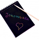 Kit créatif pour enfants dès 3 ans avec 10 feuilles noires au format A6, derrière lesquelles se cache un fond arc-en-ciel. À l’aide d’un outil de dessin en bois, les enfants créent facilement des images, cartes de vœux ou messages. Une activité ludique qui développe la motricité fine, la créativité et la coordination œil-main, idéale aussi en voyage grâce à son format compact.