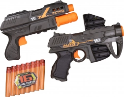Profitez de duels pleins d’adrénaline avec cette paire de pistolets à fléchettes en mousse BLACKFIRE. Le modèle Auto Scout offre un tir rapide grâce à son chargeur de 6 fléchettes et à son armement du canon avant chaque tir. L’Echo‑1 séduit par son rechargement par pompe avec insertion de la fléchette directement dans le canon et une portée plus longue jusqu’à 15,2 m.
