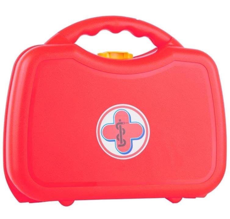Le set en mallette contient l’équipement de base indispensable pour tout soignant. La mallette rouge est fabriquée en plastique très résistant, possède une poignée de transport confortable et un clip jaune anti-ouverture. Ce petit set comprend jusqu’à 13 pièces. Tous les éléments sont évidemment sans danger pour les enfants et faciles à utiliser. La mallette contient un stéthoscope en plastique rouge et bleu foncé, des ciseaux en plastique, une pince, une seringue, un thermomètre, un otoscope, un marteau, une boîte avec des cotons-tiges, un pansement, une pince et un bloc-notes. Tous les objets sont bien sûr sûrs pour les enfants et simples d’utilisation. La gamme de sets et d’accessoires médicaux sert d’un côté à jouer au médecin ou à l’infirmier/infirmière et, de l’autre, aide les enfants à s’habituer aux visites chez le médecin, aux examens et aux interventions. Une large variété de sets avec plus ou moins d’accessoires est disponible, ainsi qu’une gamme de produits individuels, comme des blouses médicales et des stéthoscopes. L’ensemble de la gamme est conçu visuellement pour que garçons et filles puissent y jouer.