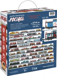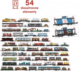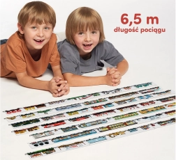 Le puzzle comprend 54 pièces recto-verso et une affiche éducative avec des faits intéressants sur la technologie et l’histoire des transports. Enfants et adultes peuvent plonger dans le monde du rail et apprendre beaucoup de choses nouvelles.