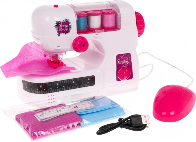 Machine à coudre interactive avec effets sonores et lumineux pour enfants à partir de 3 ans. Le jouet est fabriqué avec des matériaux résistants et est sans danger pour l’enfant. La machine possède une aiguille intégrée pour éviter toute blessure. Le jouet est équipé d’une souris pratique pour démarrer la machine, d’un bouton pour lever l’aiguille et d’un levier de pied-de-biche. Lorsque la machine fonctionne, une lumière s’allume. Le set comprend également 3 bobines de fil, un enfile-aiguille, un mètre de couture et 2 pièces de tissu. Le jeu avec la machine favorise la coordination œil-main et la créativité. La machine fonctionne avec 4 piles AA 1,5 V, piles non incluses. .. Fonctions du set : . - structure robuste en matériaux de la plus haute qualité, .- sûre pour l’enfant, .- aiguille intégrée pour éviter que l’enfant ne se blesse, .- coud réellement, .- souris pour démarrer la machine, bouton pour relever l’aiguille, levier de pied-de-biche, .- accessoires de couture : fils, 2 x tissu, enfile-aiguille, mètre de couturière, .- utilisation facile, .- sons de fonctionnement de la machine, .- témoin lumineux allumé pendant le fonctionnement, . |