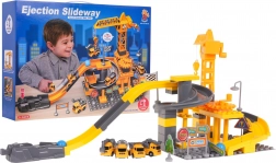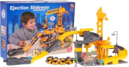 - Lanceur pour petites voitures et billes, piste de descente, grue avec rotation à 360° et crochet mobile