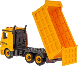 Parmi les fonctions pratiques : benne relevable et abaissable avec hayon arrière ouvrant et possibilité de détacher la remorque/la benne du châssis. Sur la cabine, vous trouverez des lumières clignotantes et des boutons de commande pour les sons de démarrage, marche arrière, klaxon et alarme. Le jouet est prêt à l’emploi dès le déballage – piles incluses.