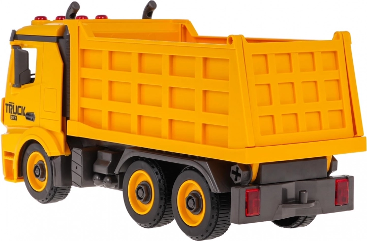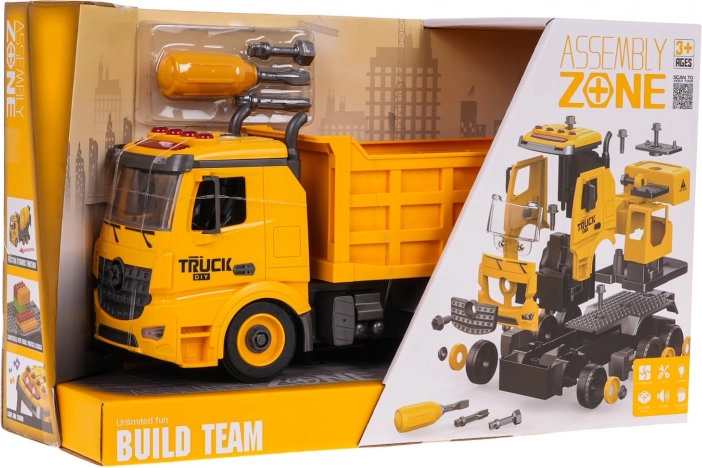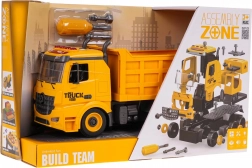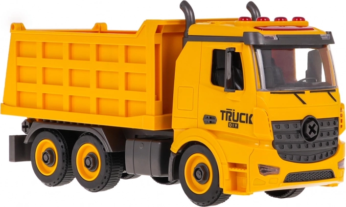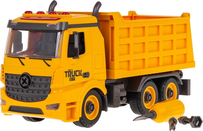 Un jouet amusant et éducatif pour petits constructeurs : benne basculante démontable pour enfants dès 3 ans avec effets lumineux et sonores. Tournevis avec embouts interchangeables inclus pour exercer la motricité fine et comprendre les principes d’assemblage. La benne dispose d’une traction avant, d’une benne relevable avec hayon arrière ouvrant et, sur le toit, de voyants clignotants et de boutons fonctionnels pour les sons de démarrage, marche arrière, klaxon et alarme. Les piles 3× AG13 sont incluses dans l’emballage.