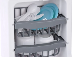 Chargement facile de la vaisselle grâce à la porte ouvrante et aux paniers à deux niveaux comme sur un vrai lave-vaisselle.