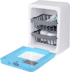 Ce lave-vaisselle pour enfants apporte des éléments réalistes au jeu : du bruit de l’eau et du rinçage/stérilisation jusqu’à la signalisation de fin de programme. Grâce au panneau tactile, les petits aides choisissent facilement le mode et la durée. La porte ouvrante et les paniers à deux niveaux permettent de charger aisément assiettes, tasses et couverts.