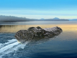 - couleur du bateau rouge, couvre-chef en forme de tête de crocodile vert foncé