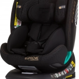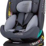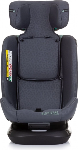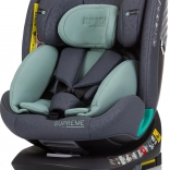 Le modèle SUPREME répond à la norme stricte i-Size (R129) et est conçu pour les enfants mesurant 40–150 cm. Il permet une installation dos et face à la route, la position dos à la route étant recommandée pour les plus petits (40–105 cm). La base avec fonction 360° facilite l’installation et l’attache de l’enfant au quotidien.