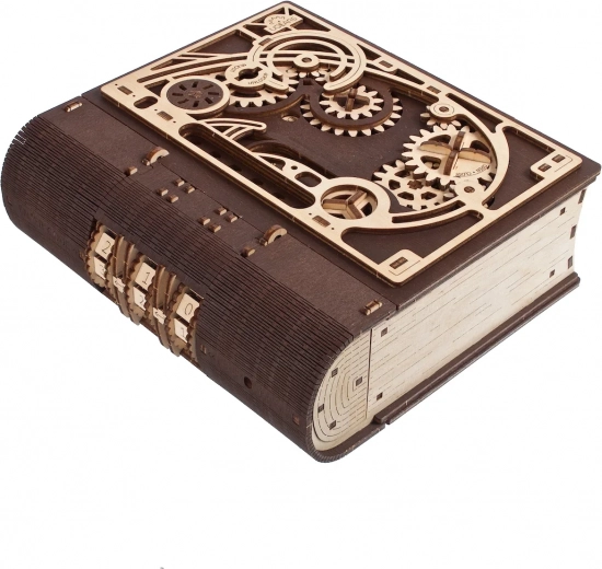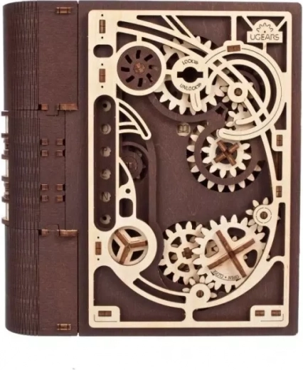 Le Livre des secrets UGEARS est une alliance astucieuse entre décoration design et cachette pratique. Grâce à un mécanisme sophistiqué d’engrenages et à un cadran sur la tranche, il s’ouvre avec un code à trois chiffres, ou, via une procédure spéciale, même sans connaître la combinaison. Les pièces découpées au laser, mêlant bois clair et foncé, confèrent au modèle un caractère steampunk affirmé.