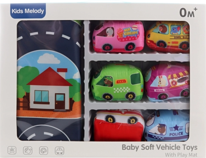 Découvrez un jouet amusant et pratique pour les tout-petits : le set comprend un tapis en tissu faisant aussi office de sac de transport et 6 véhicules souples pour un jeu en toute sécurité dès 0+. Idéal à la maison comme en voyage.