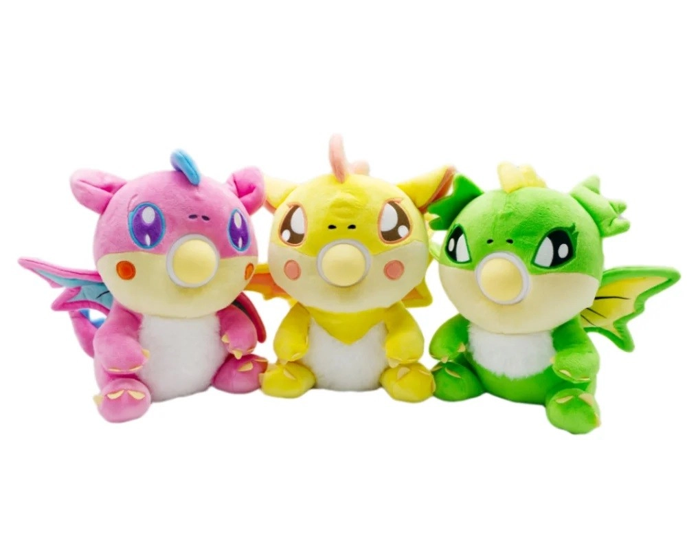 La collection Popiki Dragons comprend trois dragons en peluche uniques de différentes couleurs : jaune, rose et vert. Chaque dragon possède ses caractéristiques uniques et sa personnalité, rendant le jeu encore plus amusant. En appuyant au bon endroit, le dragon émet un son « pop » amusant et propulse une petite balle, stimulant ainsi l’imagination et la coordination des enfants.